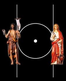 En los albores de la Masonería especulativa las figuras sobre las líneas se hicieron coincidir con San Juan el Evangelista y San Juan el Bautista, cuyas festividades están marcadas en el santoral católico los días solsticiales 27 de diciembre y 24 de junio.